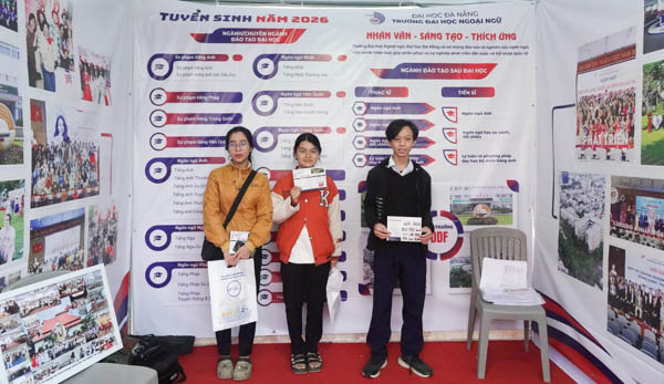Đồng hành cùng học sinh THPT trên hành trình chọn ngành, chọn trường, ngày 17/01/2026, Trường Đại học Ngoại ngữ, Đại học Đà Nẵng đã tham gia Chương trình Tư vấn tuyển sinh - Hướng nghiệp 2026 do Báo Tuổi Trẻ tổ chức tại Trung tâm Thanh thiếu nhi thành phố Huế. Chương trình là cầu nối quan trọng, giúp học sinh và phụ huynh tiếp cận thông tin tuyển sinh chính thống, cập nhật xu hướng đào tạo và định hướng nghề nghiệp trong bối cảnh giáo dục đại học ngày càng đổi mới và hội nhập.