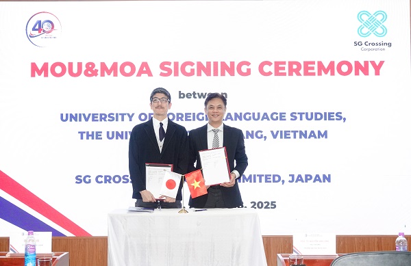Ngày 18/8/2025, Trường Đại học Ngoại ngữ, Đại học Đà Nẵng (UD-UFLS) đã ký kết Biên bản ghi nhớ (MOU) và Thỏa thuận hợp tác (MOA) với Công ty TNHH SG Crossing. Đây là dấu mốc quan trọng trong chiến lược nâng cao chất lượng đào tạo và mở rộng cơ hội nghề nghiệp cho sinh viên, đặc biệt là sinh viên Khoa Ngôn ngữ & Văn hóa Nhật Bản.