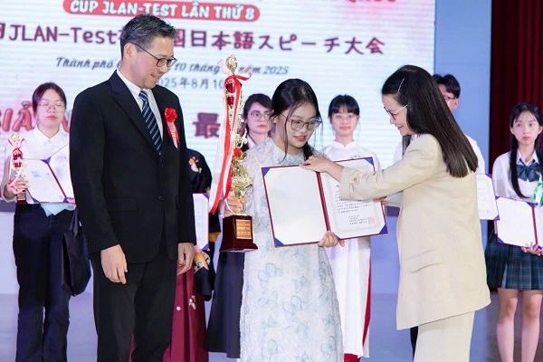 Vượt qua 15 thí sinh xuất sắc trên toàn quốc, Phan Thảo Nguyên - sinh viên Khoa Ngôn ngữ & Văn hóa Nhật Bản, Trường Đại học Ngoại ngữ, Đại học Đà Nẵng đã giành giải Nhất Cuộc thi Hùng biện tiếng Nhật Toàn quốc Cúp JLAN-Test lần thứ 8 với chủ đề “AI và việc học tiếng Nhật”. Thành tích này không chỉ khẳng định bản lĩnh và trí tuệ của sinh viên Nhà trường mà còn lan tỏa niềm tự hào, truyền cảm hứng mạnh mẽ tới cộng đồng học tiếng Nhật trên cả nước.