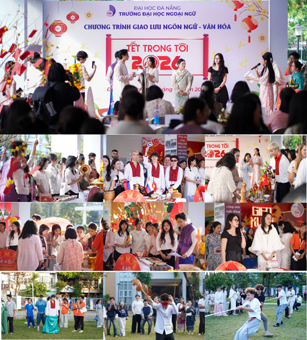 Diễn ra vào ngày 30/01/2026 tại Trường Đại học Ngoại ngữ, Đại học Đà Nẵng, “Tết Trong Tôi 2026” đã thu hút sự tham dự của đông đảo đại biểu, cán bộ, giảng viên và sinh viên Việt Nam cùng các lưu học sinh đến từ Lào, Trung Quốc, Nga, Hàn Quốc, Pháp, tạo nên một bức tranh xuân đa sắc màu văn hóa, rộn ràng và ấm áp.
