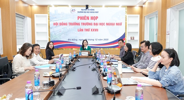 Ngày 09/12/2025, Hội đồng trường Trường Đại học Ngoại ngữ, Đại học Đà Nẵng đã tổ chức Phiên họp thứ XXVII. Phát biểu khai mạc, Chủ tịch Hội đồng Trường nhấn mạnh ý nghĩa đặc biệt quan trọng của phiên họp trong việc xem xét, quyết định các vấn đề trọng tâm, qua đó định hướng chiến lược và thúc đẩy sự phát triển bền vững của Nhà trường trong giai đoạn tới.
