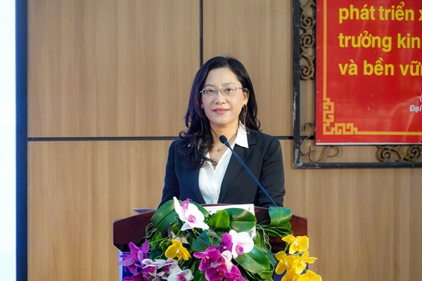 Đồng chí Ngô Văn Hà - Trưởng Khoa Lý luận chính trị, Trường Đại học Kinh tế, Đại học Đà Nẵng trình bày báo cáo tại Hội nghị