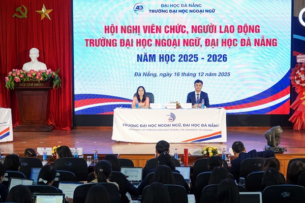 Sáng ngày 16/12/2025, tại Hội trường A, Trường Đại học Ngoại ngữ, Đại học Đà Nẵng đã long trọng tổ chức Hội nghị Viên chức, Người lao động năm học 2025-2026. Hội nghị có sự tham dự của 121 đại biểu, gồm lãnh đạo Đại học Đà Nẵng, Ban Giám hiệu Nhà trường, đại diện các tổ chức đoàn thể cùng toàn thể viên chức, người lao động.