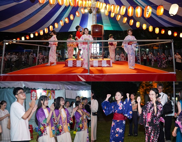 Các sinh viên hào hứng hòa mình vào điệu nhảy Bon Odori truyền thống của Nhật Bản