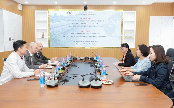 Sáng ngày 4/12/2025, Trường Đại học Ngoại ngữ, Đại học Đà Nẵng vinh dự đón tiếp đoàn Tùy viên Hợp tác Giáo dục, Đại sứ quán Pháp tại Việt Nam đến thăm và làm việc.